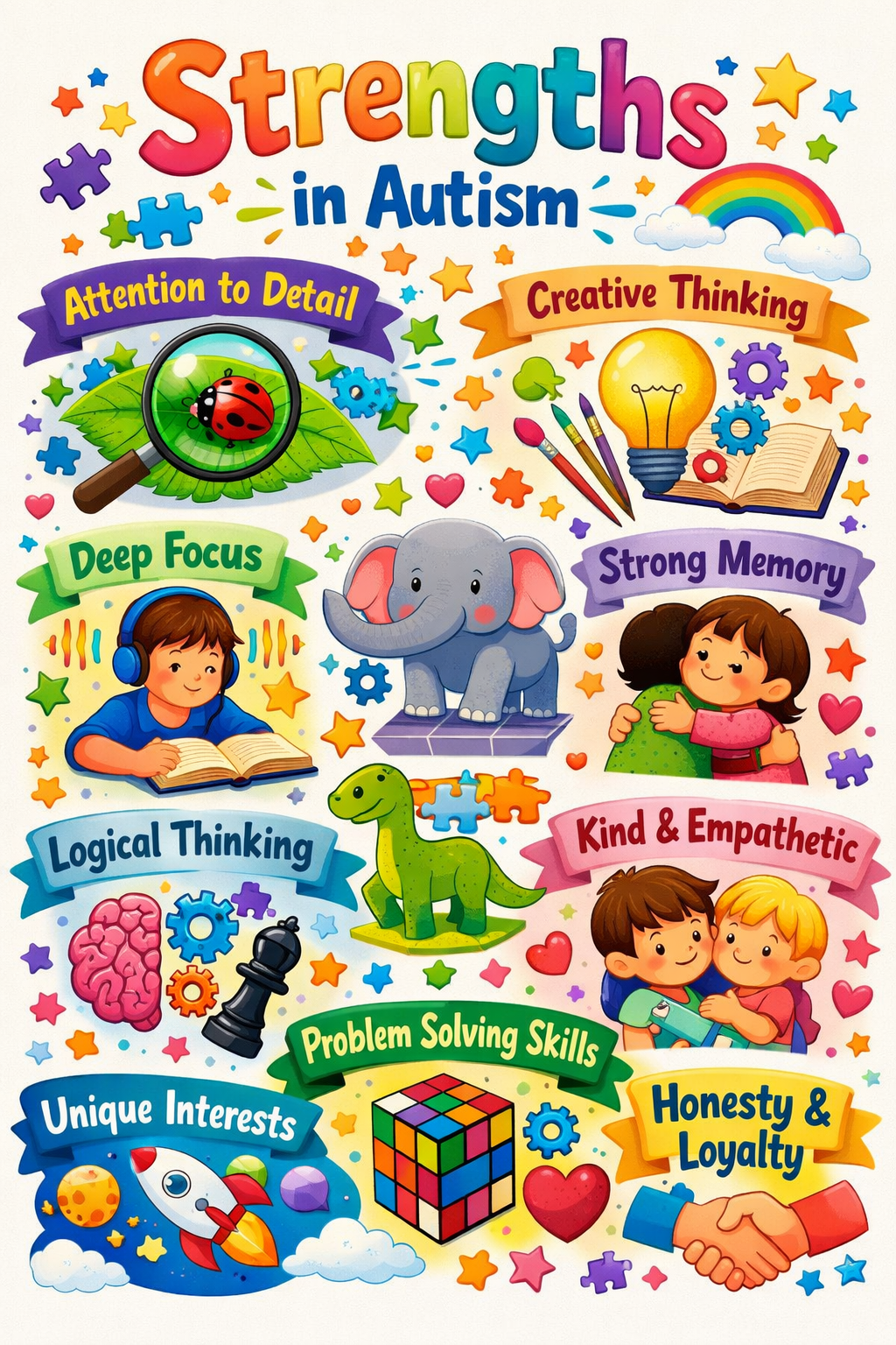 Many autistic individuals show meaningful strengths such as visual memory, pattern recognition, and strong recall that can support development when identified well.